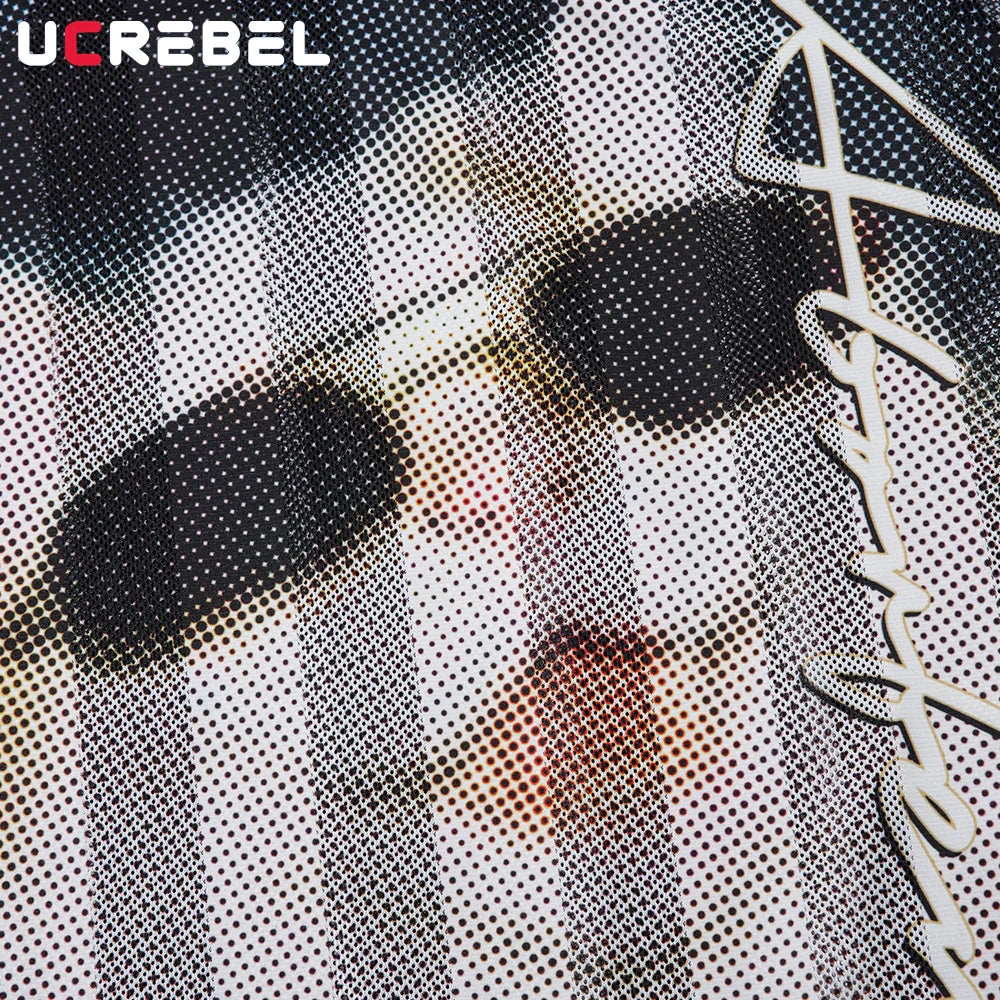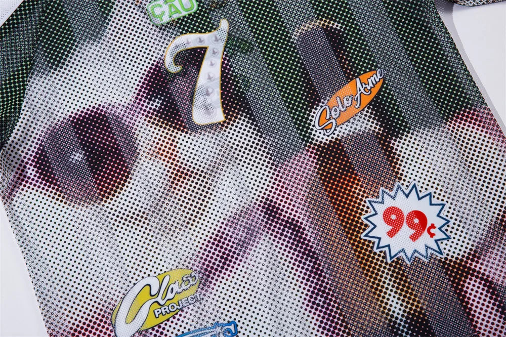 Cat Print Short Sleeve T-shirt Mens Summer Retro High Street Loose Raglan Half-Sleeve V-neck Breathable Mesh Tshirt Men